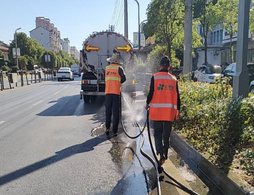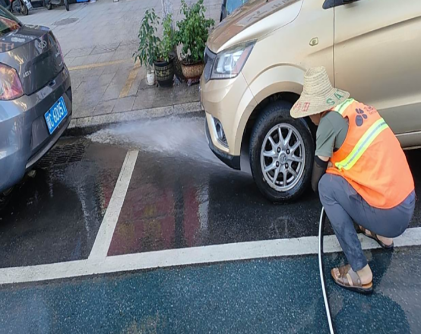 对于车辆底部缝隙、人行道砖缝、路边排水口等机械难以清理的细节区域,环卫工人更是直接蹲下身来,用高压水枪一点一点细致冲洗,甚至用手抠除缝隙中残留的泥沙,确保每一处路面都能恢复干净整洁的状态。