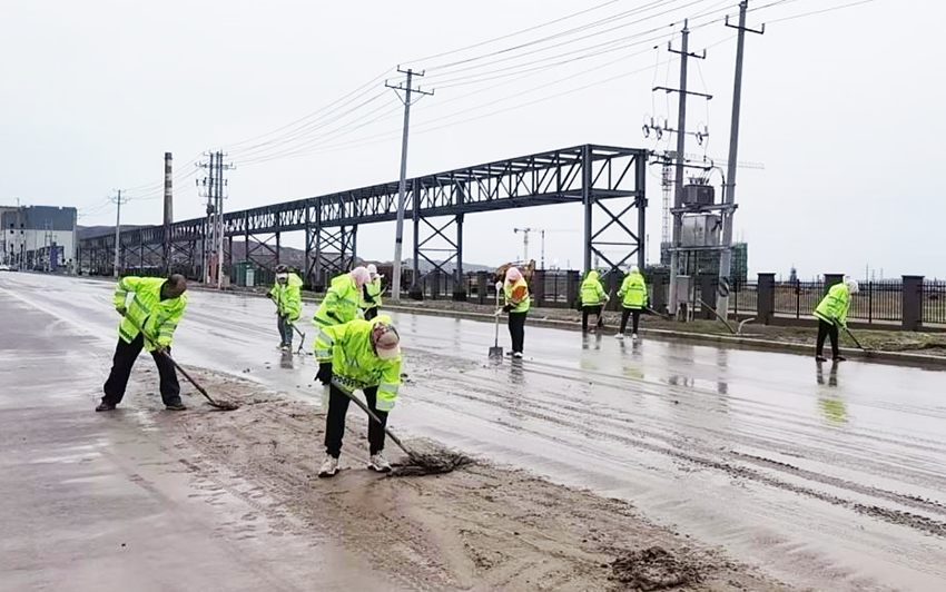为迅速消除隐患、恢复园区正常环境与交通秩序,金沙田金昌环卫运营中心积极响应并配合当地政府部门部署,第一时间组织环卫工人、调配作业车辆,聚焦工业园区积沙严重的重点路段,启动应急环境整治工作。全体作业人员主动加班加点,全身心投入清淤保洁任务中。